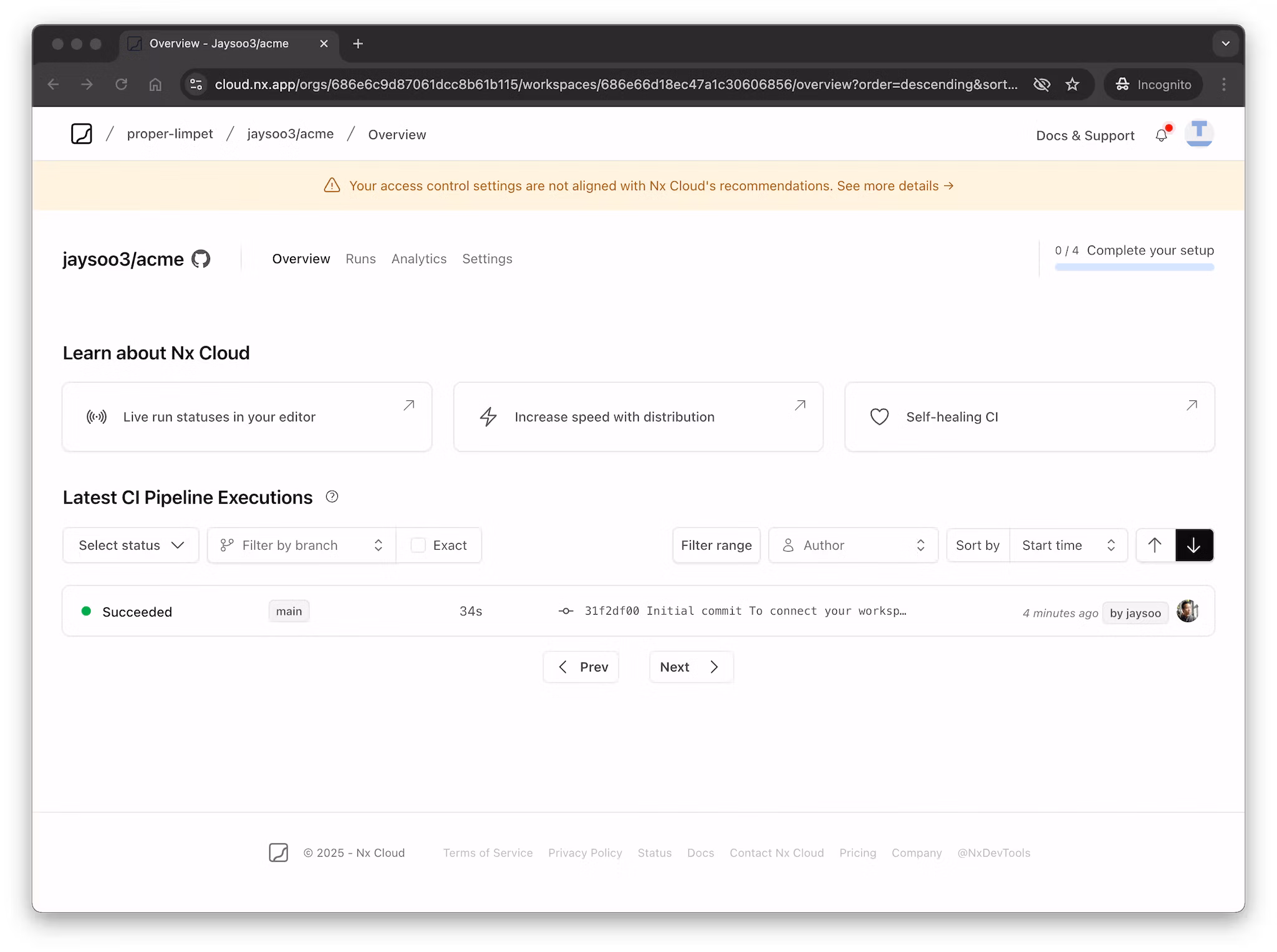 You should see your workspace in your Nx Cloud organization.